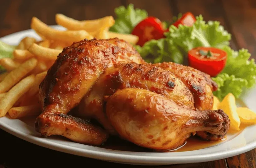 - Finalize e sirva: Quando a pele estiver dourada e a carne cozida por completo (cheque com um termômetro ou espetando a coxa – o líquido deve sair claro), retire do fogo e deixe descansar por 10 minutos antes de fatiar.